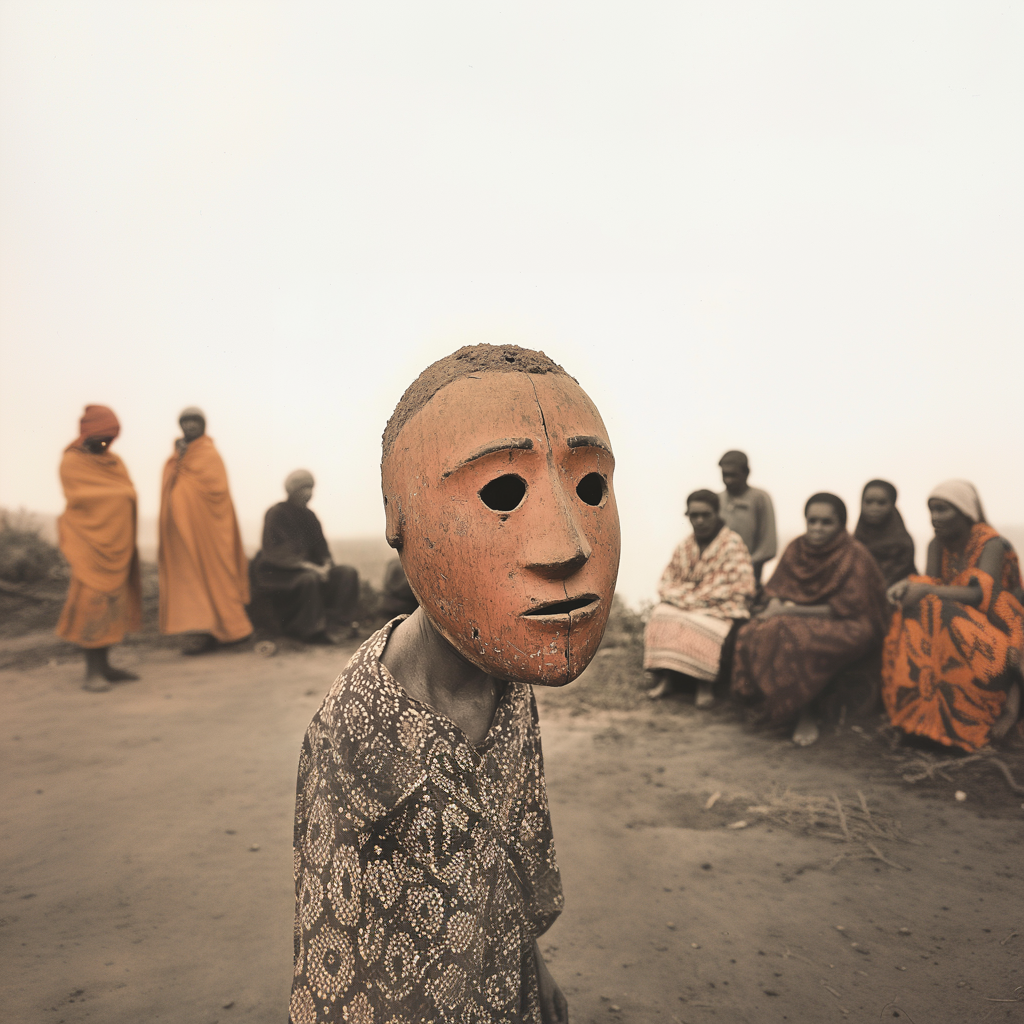 The night is alive with the rhythm of drums, their deep, thunderous echoes rolling through the Tanzanian village. Firelight dances against the wooden mask as the Lipiko, the masked dancer, emerges from the shadows. In the sacred traditions of the Makonde people, this is not a mere performance—it is a passage, a transformation. The Lipiko mask, carved from indigenous wood and adorned with natural pigments, conceals the dancer’s identity, allowing spirits and ancestors to speak through them. With each step, each turn, the mask commands the space, embodying the voices of the past and the wisdom of those who came before. To wear it is to step into the soul of Makonde ritual, to become a living vessel for the unseen.